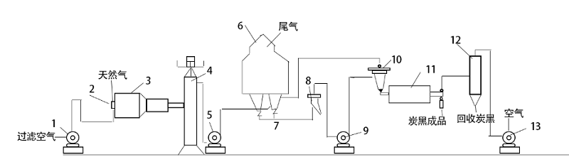 天然氣半補(bǔ)強(qiáng)爐法炭黑生產(chǎn)工藝流程