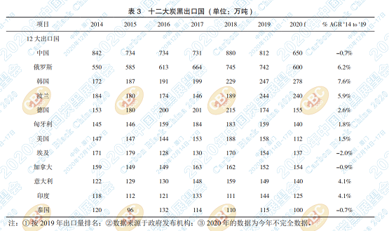 2 炭黑的生產(chǎn)大國與出國大國