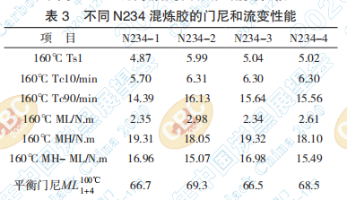 2.2? 不同 N234 混煉膠的門尼和流變性能