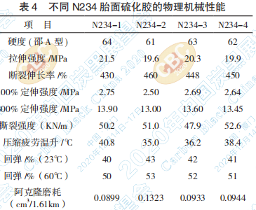 2.3? 不同 N234 硫化膠的物理機(jī)械性能