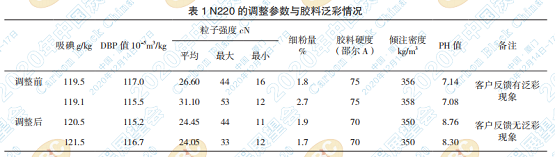 從表1看,調(diào)整產(chǎn)品的粒子強(qiáng)度后,客戶反饋 膠料的泛彩現(xiàn)象有改善。從我方的測(cè)試結(jié)果看, 膠料的邵氏硬度降低了5個(gè)值,也符合膠料分散性 改善后硬度降低的理論。