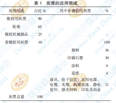 從上表可以看出,90% 的炭黑應(yīng)用到橡膠行 業(yè),只有 10% 的炭黑應(yīng)用到非橡膠行業(yè)。