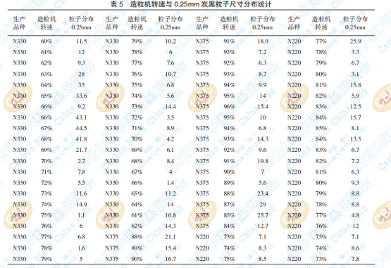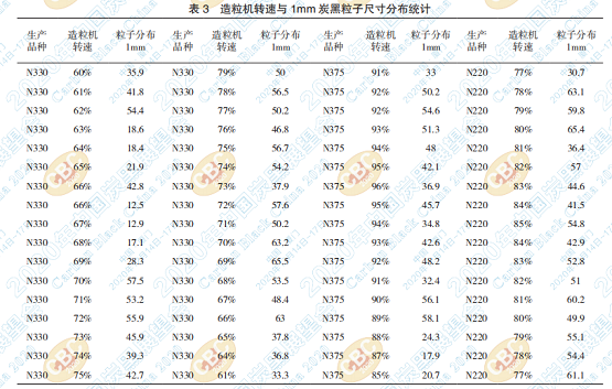 造粒機(jī)轉(zhuǎn)速與炭黑粒子大小分布的關(guān)系
