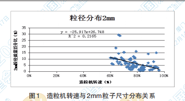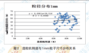 2、造粒機(jī)轉(zhuǎn)速與1mm炭黑粒子尺寸分布的關(guān) 系