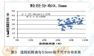 3、造粒機(jī)轉(zhuǎn)速與 0.5mm 炭黑粒子尺寸分布的 關(guān)系