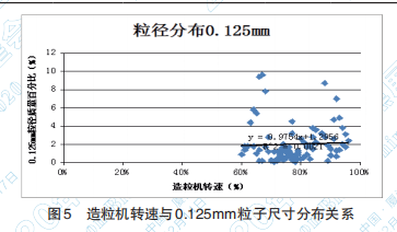 5、造粒機(jī)轉(zhuǎn)速與 0.125mm 炭黑粒子尺寸分布 的關(guān)系
