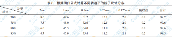 根據(jù)上述回歸公式,在不同造粒機(jī)轉(zhuǎn)速下,粒 子分布如下: