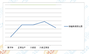 根據(jù)炭黑生產(chǎn)的經(jīng)驗(yàn),新建生產(chǎn)線炭黑產(chǎn) 品鐵磁性物質(zhì)含量少,隨著生產(chǎn)線使用時(shí)間的 增加,鐵磁性物質(zhì)的含量會(huì)逐漸增加,可參考 下圖。