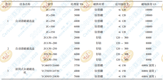 5? 炭黑生產(chǎn)中常用磁選設(shè)備參數(shù)對(duì)比