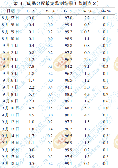 采用隨機(jī)分配,對(duì)獲取的金屬雜質(zhì)測(cè)試成分, 監(jiān)測(cè)3個(gè)點(diǎn)的金屬雜質(zhì)成分見下表: