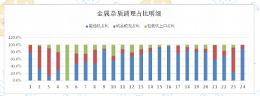金屬雜質(zhì)在各個(gè)監(jiān)測(cè)點(diǎn)的清理占比見下圖: