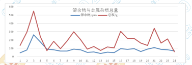 1.4 在上面兩道除雜過程以后,在包裝成品前在 再進(jìn)行金屬雜質(zhì)過濾清理。及監(jiān)測(cè)3的各種金屬雜 質(zhì)成分分析: