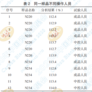 本次對(duì)比實(shí)驗(yàn)安排了不同的操作人員主要對(duì) 存在分析偏差的N220和N234進(jìn)行對(duì)比實(shí)驗(yàn),結(jié)果 如下表 2。