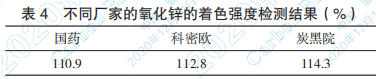 ※ 氧化鋅的品質(zhì)(廠家不同)是影響著色強(qiáng) 度檢測(cè)值的關(guān)鍵因素。