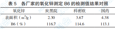 從原理上看,白色粉末氧化鋅的白度及其表 面積對(duì)著色強(qiáng)度試驗(yàn)影響很大。由于 ZnO 的白度 無(wú)法測(cè)定,但其表面積可以用低溫氮吸附儀測(cè)定, 同時(shí)跟測(cè)定 B6 值結(jié)果對(duì)照,見(jiàn)下表 5。