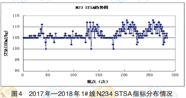 4? 2017 年—2018 年 1# 線生產 N234 產 品比表面積的穩(wěn)定性