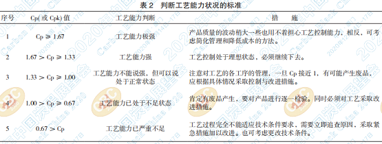 ASTM D4583-95[2]針對炭黑生產的特點,借用 過程能力指數的計算原理和方法,規(guī)定了炭黑生 產的工藝指數的計算方法,并以此作為定量評價 工藝控制穩(wěn)定性和所產產品的質量與技術條件間 的符合性的依據。該標準簡單實用,作為一種統(tǒng) 計技術,可以很好地指導炭黑生產的工藝過程控 制,在發(fā)達工業(yè)國家和管理水平高的企業(yè),該方法 已得到很好的應用。炭黑生產使用這一統(tǒng)計技術, 我們可以從質量指標的穩(wěn)定性反向推理我們的工 藝控制水平,通過調整工藝過程控制并最終促使 炭黑產品整體質量水平的提高。表 2 為 CP 值計算 對工藝控制能力的判斷。