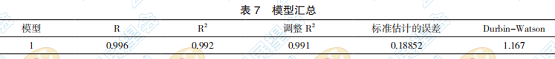 上表給出了模型整體擬合效果的概述,模型 的擬合優(yōu)度系數為 0.992,模型擬合效果較好。