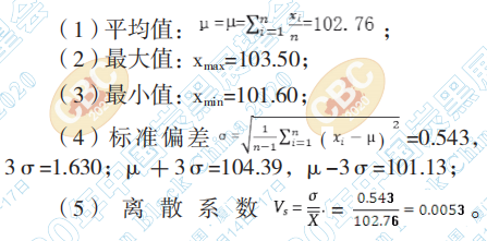 (2)從標(biāo)準(zhǔn)方差和離散度系數(shù)看,數(shù)值也很 小,所有數(shù)據(jù)均在 μ±3σ 范圍內(nèi),沒(méi)有異常數(shù) 據(jù),數(shù)據(jù)平穩(wěn)、集中、離散小;