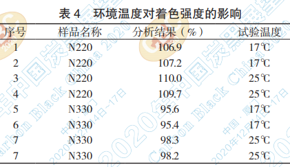 由此可以得出結(jié)論,氧化鋅的品質(zhì)也是影響著色 強(qiáng)度檢測(cè)值的關(guān)鍵因素。由于炭黑檢測(cè)用氧化鋅沒(méi)有 制定統(tǒng)一的標(biāo)準(zhǔn),在日常分析工作中,當(dāng)發(fā)生因?yàn)檠? 化鋅的品質(zhì)影響著色強(qiáng)度檢測(cè)值的情況時(shí),應(yīng)使用標(biāo) 準(zhǔn)樣對(duì)分析數(shù)據(jù)進(jìn)行回歸校訂,減少分析誤差。