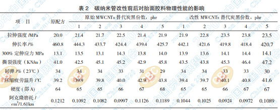 碳納米管改性前后對輪胎胎面膠性能的影響