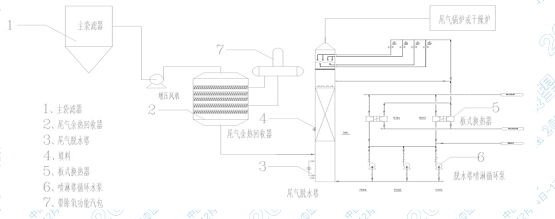 摘? 要:隨本文闡述了炭黑尾氣中含水量偏高,對于尾氣資料利用的不利影響。通過利用尾氣余熱回收裝置對熱量 進(jìn)行初步回收,然后利用填料塔進(jìn)行水氣換熱進(jìn)行降溫處理,達(dá)到尾氣脫水的目的,脫水后尾氣送至尾氣鍋爐或焦?fàn)t作 為燃料。同時填料塔采用閉式循環(huán)思路進(jìn)行設(shè)計,可以杜絕尾氣氣味的散發(fā),更加綠色環(huán)保。