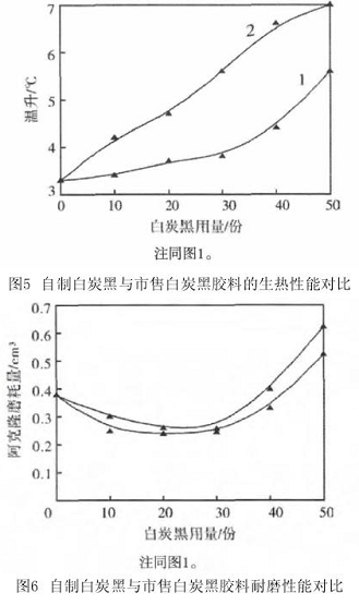 圖5 自制白炭黑與市售白炭黑膠料的生熱性能對(duì)比注同圖1。