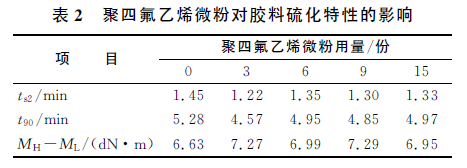 聚四氟乙烯微粉對(duì)膠料硫化特性的影響如表2所示。