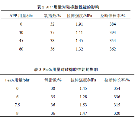 基本配方(質(zhì)量份):硅橡膠100;白炭黑30;硅油1.5;雙二五2;氫氧化鋁、聚磷酸銨、三氧化二鐵變量。