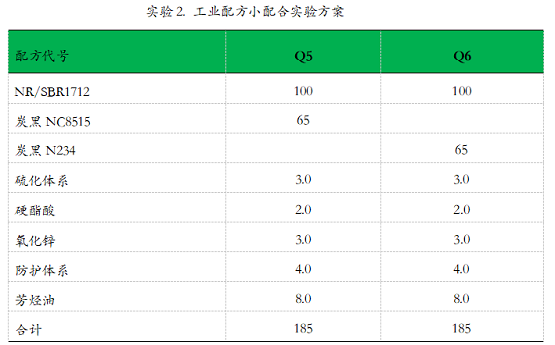 工業(yè)配方的小配合實驗我們在相關(guān)的配方及工藝條件下,用等量的NC8515炭黑替代N234炭黑,分析兩種炭黑的混煉膠及丈母化膠的門尼、硫變、焦燒、老化性能,耐撕裂性能、變形及磨耗指數(shù),對比性能的變化,為工業(yè)化實驗尋求替代依據(jù)。