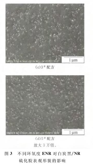圖3為不同環(huán)氧度ENR對白炭黑/NR硫化膠表觀形貌的影響。