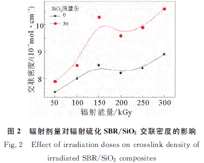 2.2 輻射硫化SBR/SiO2復(fù)合材料的交聯(lián)密度