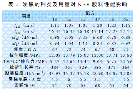 在NBR 皮膜膠料中,采用N550、N660 兩種炭黑并用, 產(chǎn)生了協(xié)同效應(yīng), 提高了炭黑的分散性及硫化膠的物理機(jī)械性能。