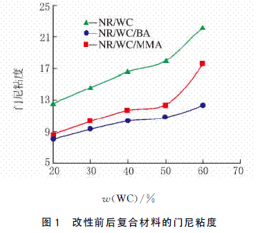 不同的丙烯酸單體對NR/WC/M 復合材料門尼粘度的影響如圖1所示。