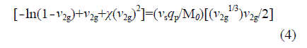 式中,ν2g是聚合物在溶脹凝膠中的體積分?jǐn)?shù)。利用公式(9)計(jì)算出Mc