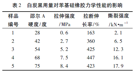 2. 1 白炭黑用量對苯基硅橡膠力學性能的影響白炭黑用量對苯基硅橡膠硫化膠力學性能的影響見表2。