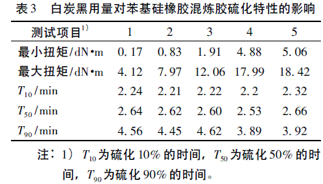 表3 是白炭黑用量對苯基硅橡膠混煉膠硫化特性的影響。