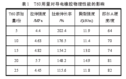 2.1.2 T60用量對(duì)橡膠導(dǎo)電性能的影響
