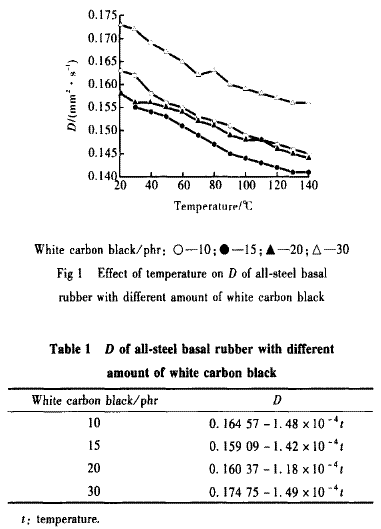 白炭黑和偶聯(lián)劑Si-69對(duì)全鋼基部膠料熱擴(kuò)散系數(shù)的影響