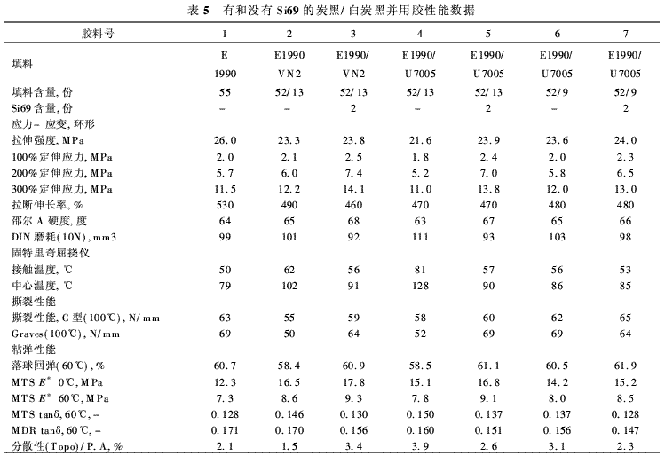 通過純炭黑膠料與炭黑/白炭黑并用膠比較的測定值的對比,可以看出,并用膠抗撕裂性能較好。