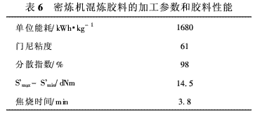 由密煉機(jī)混煉的膠料參數(shù)見(jiàn)表6,由表6數(shù)據(jù)可見(jiàn),單位能耗較高。