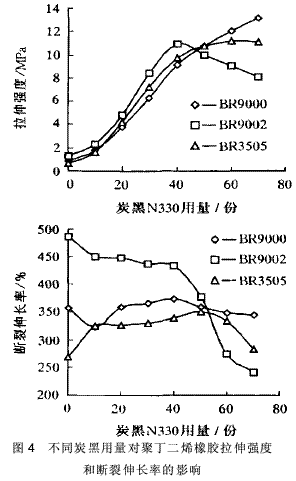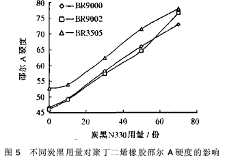 炭黑用量對不同聚丁二烯橡膠性能的影響