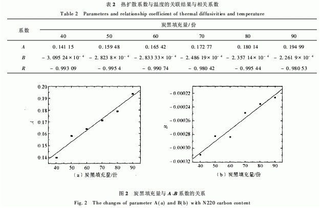(1)混煉膠的熱擴散系數(shù)隨炭黑用量的增加而增大,說明了添加炭黑多的膠料其熱量傳遞的快,溫度敏感性強。