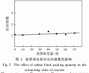 2. 1. 1 對反應(yīng)級數(shù)n的影響 實驗在160℃下,考察了快壓出炭黑550填充量對硫化反應(yīng)級數(shù)的影響,結(jié)果見圖2。