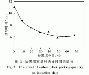 2. 1. 2 對誘導(dǎo)時間td的影響 快壓出炭黑550的填充量對誘導(dǎo)時間有著較大的影響,結(jié)果見圖3。