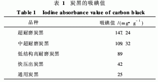 炭黑粒子表面呈粗糙狀態(tài),因此采用吸附法測量比表面積,如碘吸附法,吸附碘量的多少反映了炭黑比表面積的大小?,F(xiàn)采用5種不同的炭黑,據(jù)基本配方,炭黑份數(shù)均為50份,依前述膠料制備方法,測定硫化曲線。5種碳黑的吸碘值見表1。