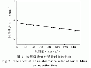 2. 2. 2 對誘導(dǎo)時間td的影響 圖7是炭黑吸碘值對td影響的結(jié)果。