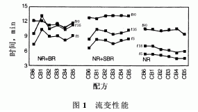 本工作的目的在于,應(yīng)用新研發(fā)的粒徑比常規(guī)胎體炭黑(N660)更小而補強作用適中的N330炭黑。在考慮最終產(chǎn)品要求的苛刻度時,通過將不同聚合物并用膠(NR,NR+BR和NR+SBR)內(nèi)的碘值由84mg/g(N330)降低至58mg/g,研究了對諸如胎體膠料的屈撓疲勞、生熱等價格/性能參數(shù)的評估情況。