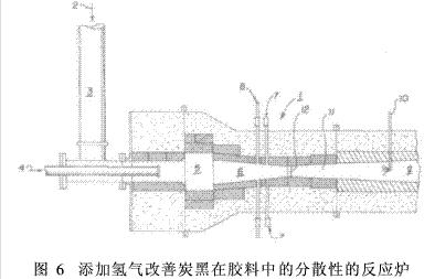 K. Iida發(fā)現(xiàn),如果在反應(yīng)爐縮口的原料噴入點(diǎn)附近通入適量水蒸汽的話,即可有效地生產(chǎn)出極限比表面積指數(shù)為負(fù)值的炭黑。通常,添加3%的水蒸氣,可使反應(yīng)爐的極限比表面積降低14m2·g-1或更多。