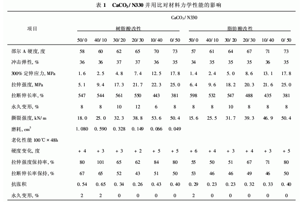 納米碳酸鈣/炭黑并用對丁苯橡膠性能的影響
